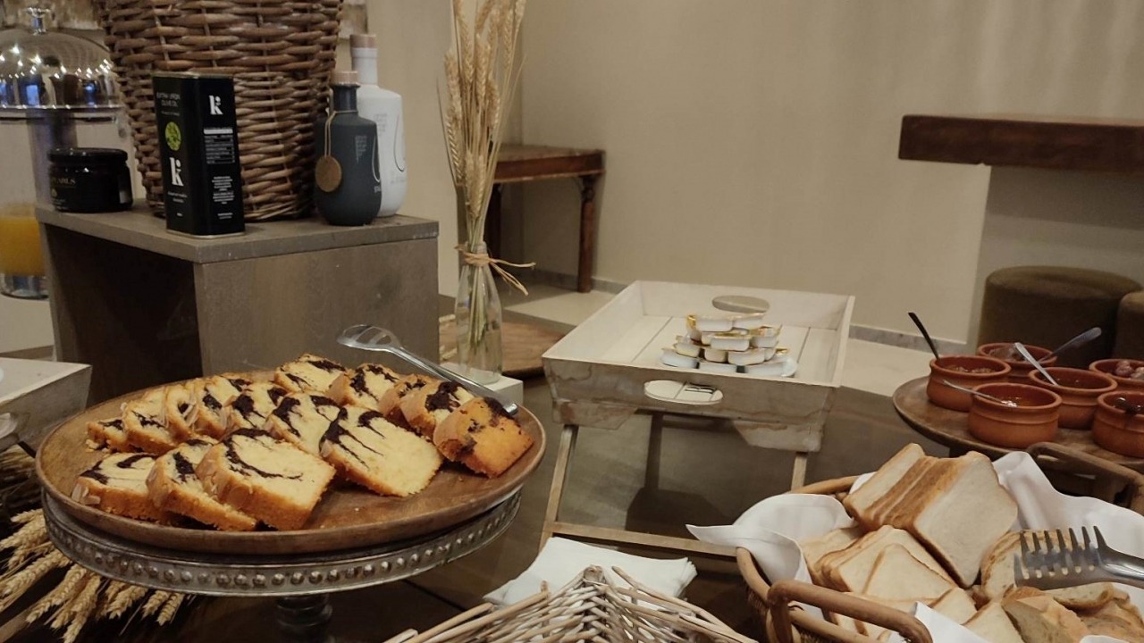 • Αποξηραμένα σύκα, σταφίδες, κουλούρια πορτοκαλιού, κέικ, κρουασάν, δίπλες, λουκούμι, ταχίνι, μέλι, μερέντα και διάφορες γεύσεις χειροποίητων μαρμελάδων.